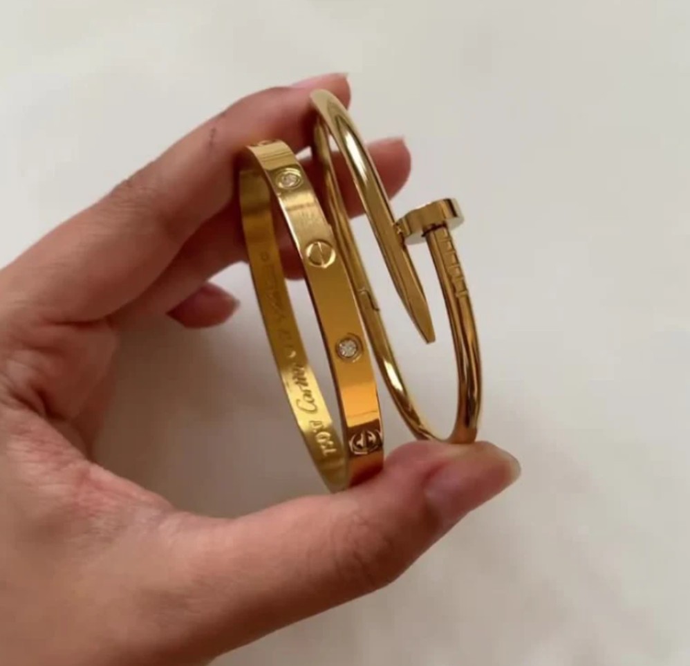 Stainless Steel Imported Cartier Nail And Love Bangle Stack