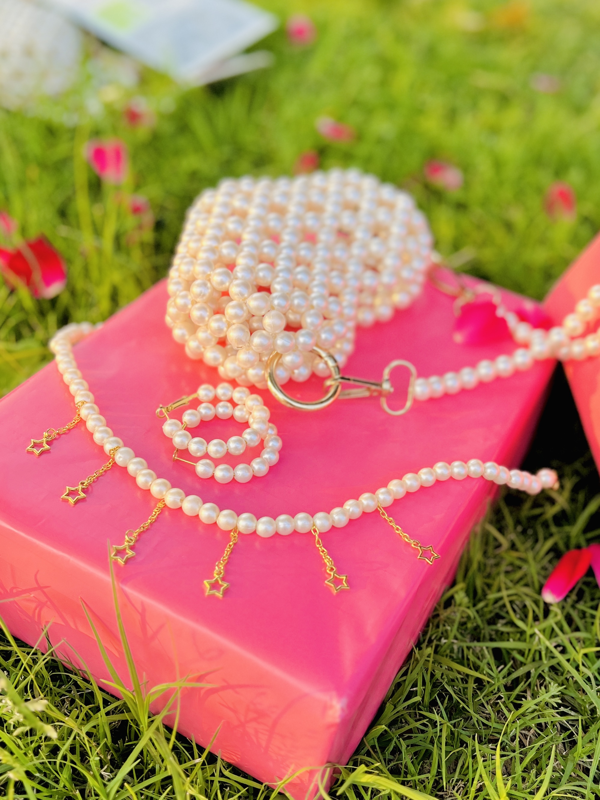 This elegant heart-shaped clutch is handcrafted with delicate pearls, perfect for weddings, parties, and special occasions. It’s a unique accessory that adds sophistication to any outfit.