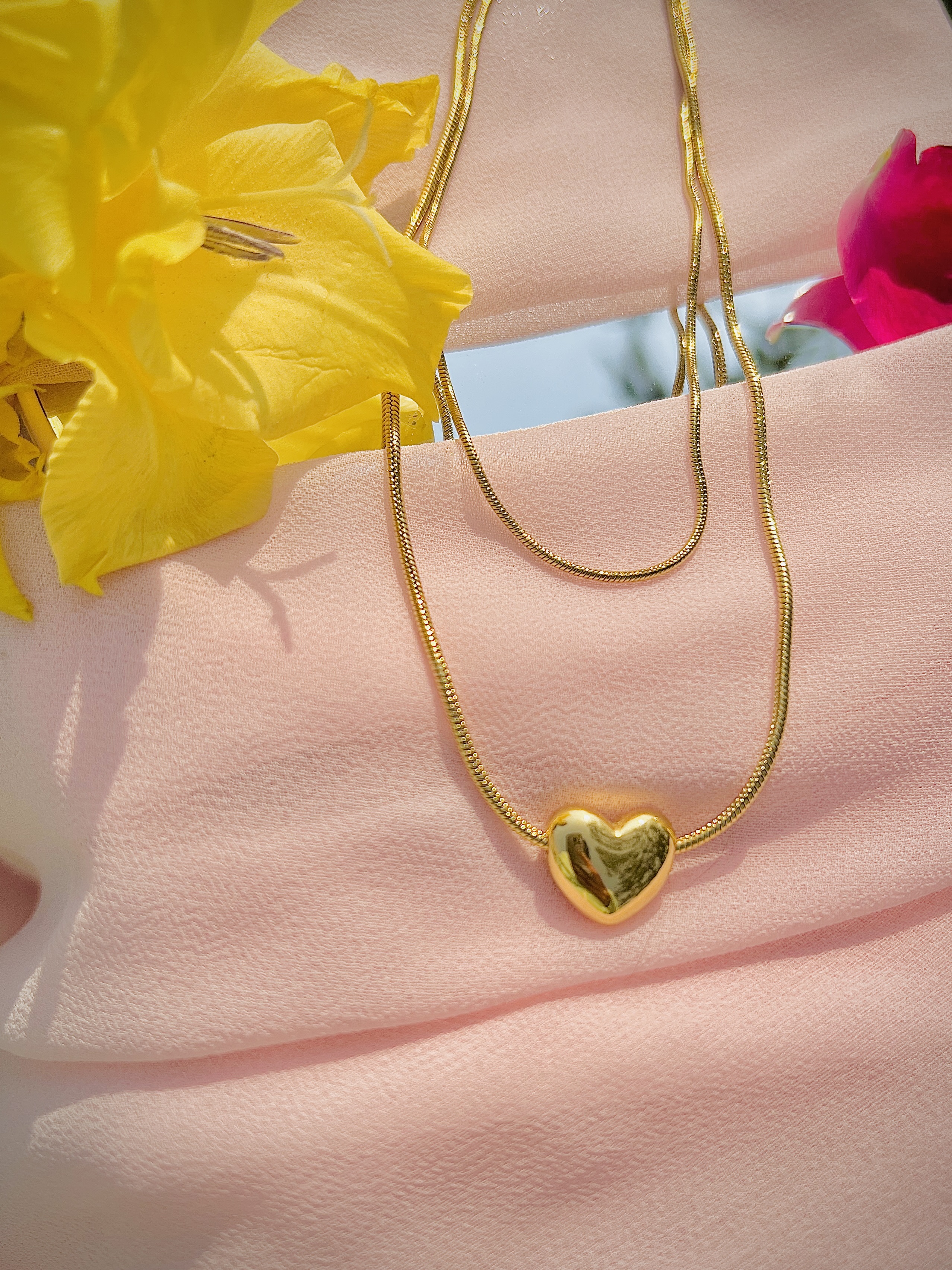 Delicate gold necklace featuring a polished heart pendant. A classic symbol of love and affection, perfect for everyday wear.