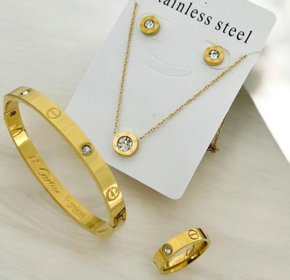3 PIECE SET CARTIER & NAIL BANGEL With BLACK CLOVER BRACELET